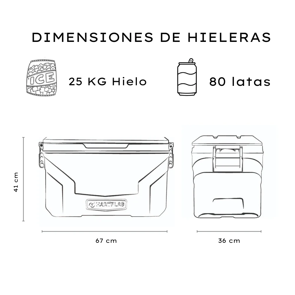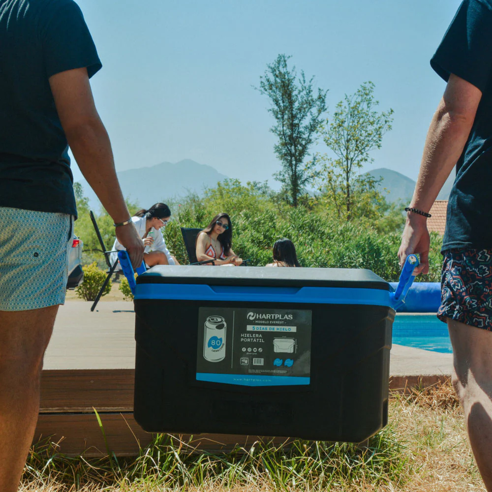 Fabricada con materiales plásticos de alta calidad, nuestra hielera garantiza durabilidad y resistencia, soportando el uso rudo y las condiciones del exterior. Su diseño portátil facilita su transporte con las asas a los costados, mientras que su tapa hermética y sistema de cierre seguro evitan fugas y mantienen la temperatura interior.