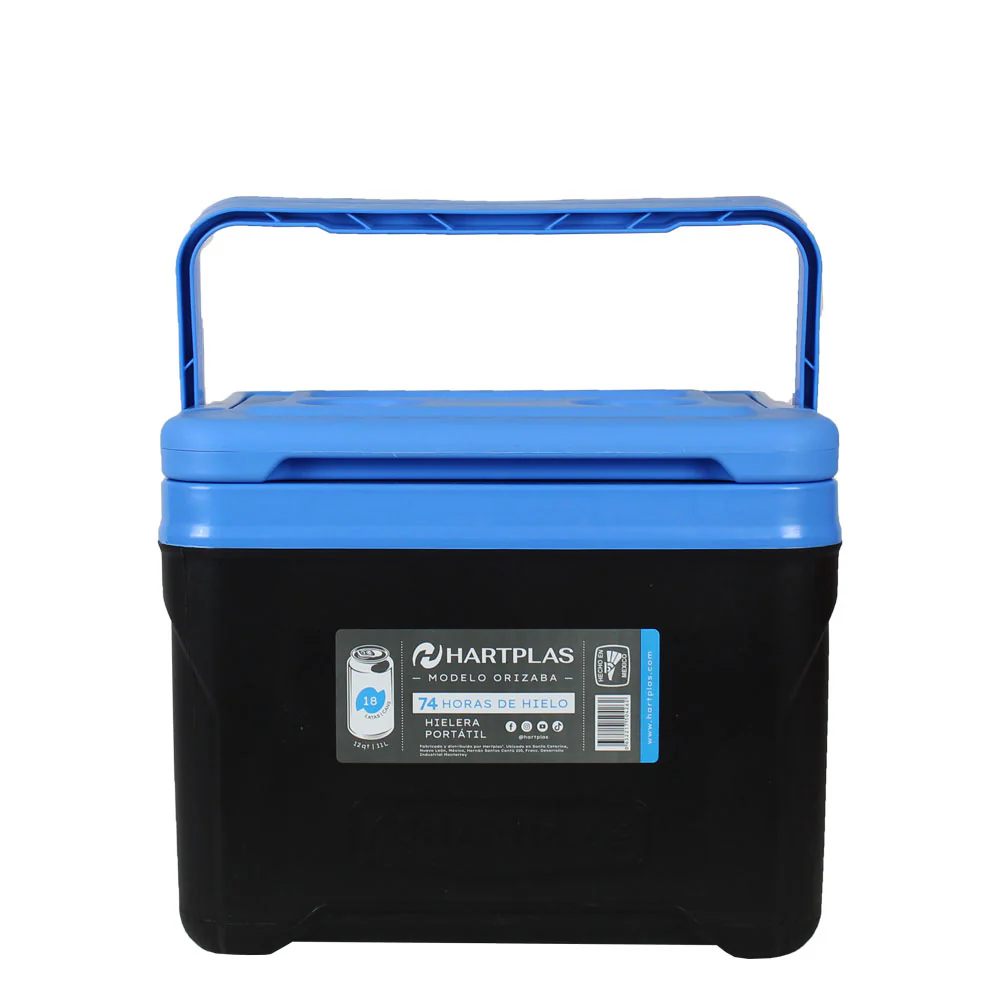 Hielera Orizaba Negro-Azul Capacidad 18 Latas 13 Qt, 12.3 litros, Rectangular Duración de hielo hasta 72 horas